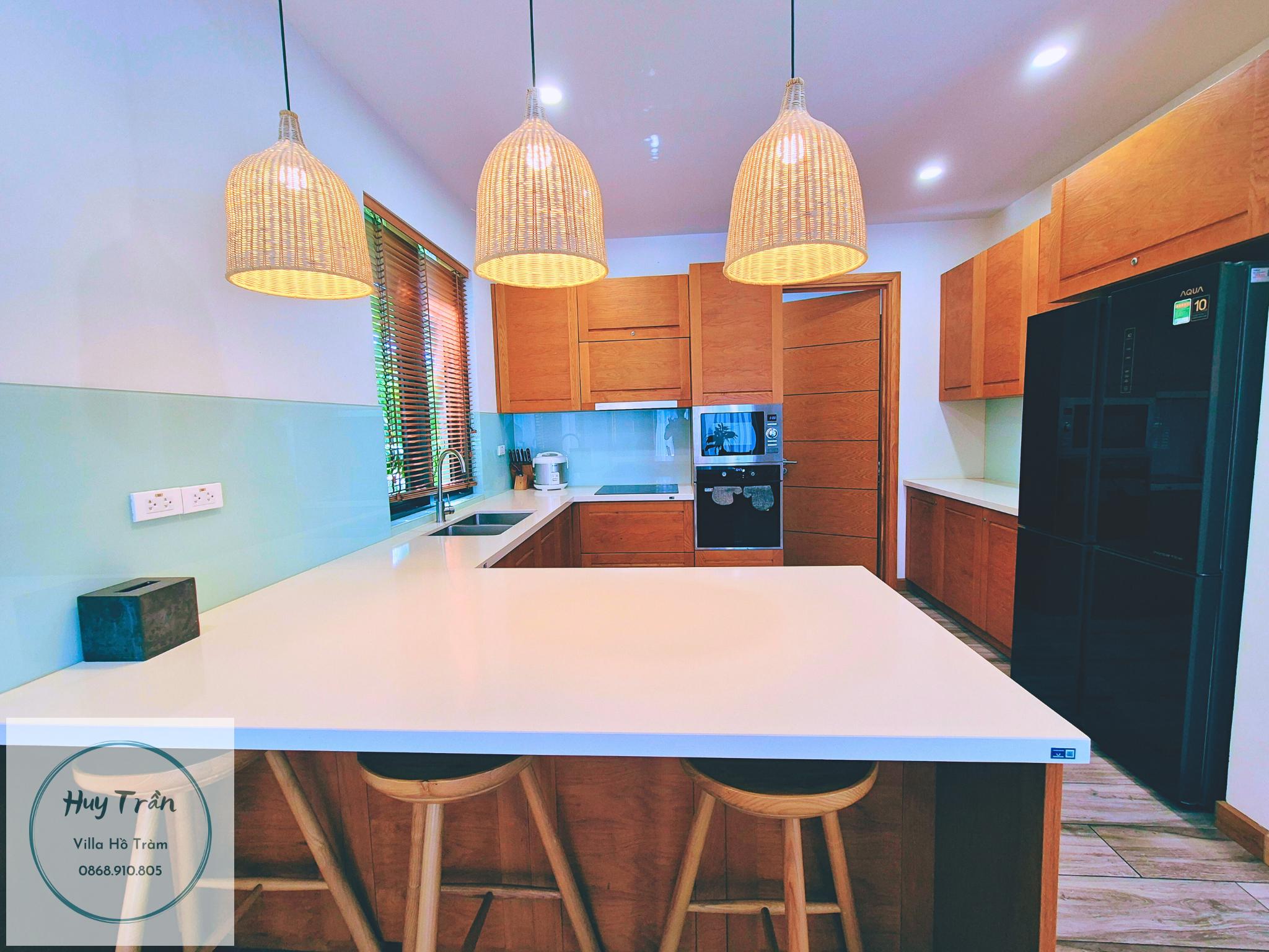 - Villa có bếp với đầy đủ dụng cụ nấu ăn